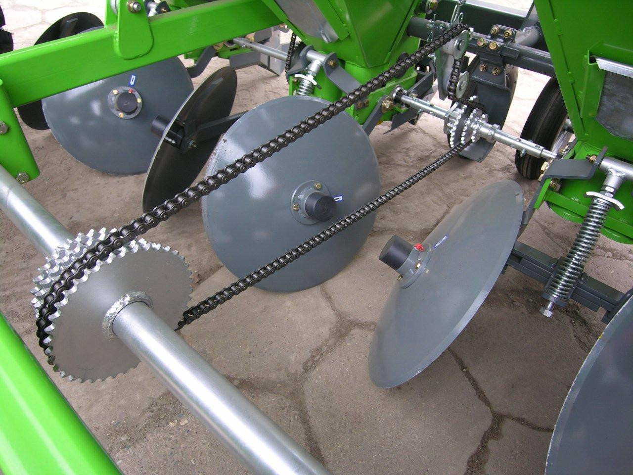 KORA 4 Mounted four row potato planter with hopper load capacity 840-900 kg (it depends from width of planting). |