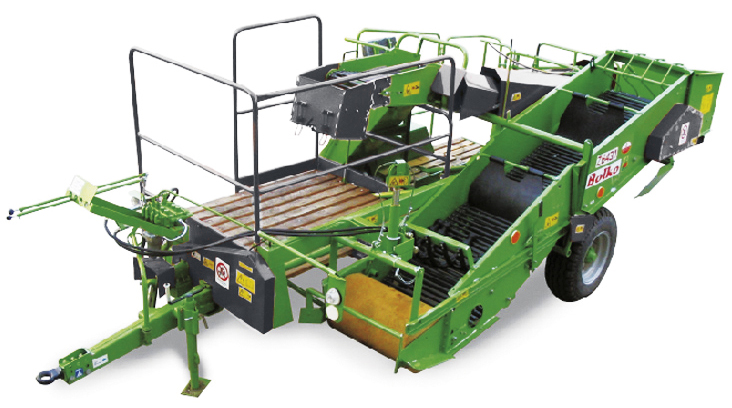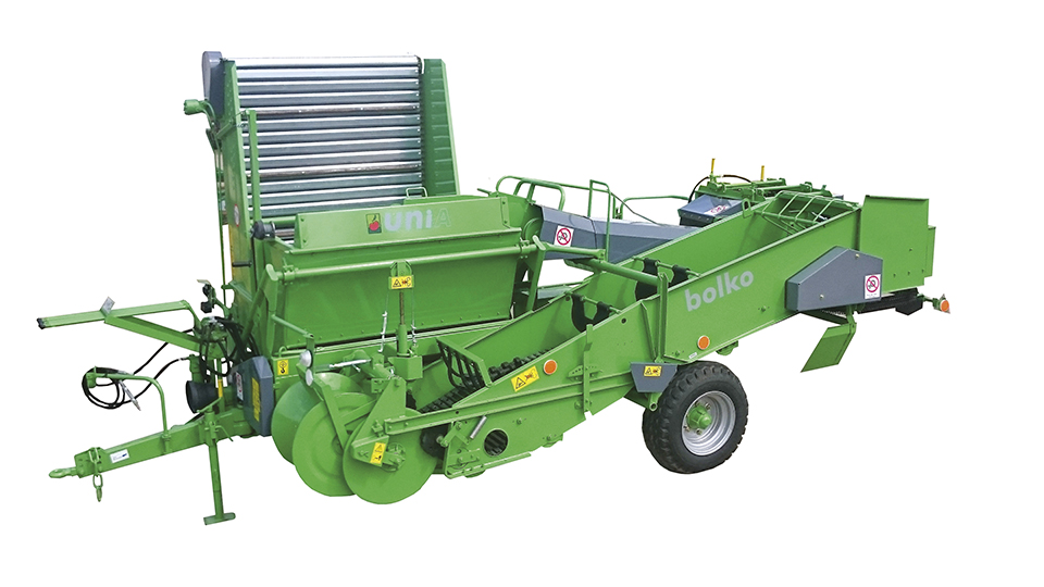| "BOLKO Arracheuse-chargeuse avec trémie d’une capacité de 1250 kg et plateforme de nettoyage. | BOLKO S Arracheuse-chargeuse avec ensacheuse et plate-forme d’une capacité de 500 kg. | BOLKO T Arracheuse-chargeuse pour la récolte des pommes de terre et des légumes conçue pour le chargement direct sur remorque. | La ramasseuse d’oignons constitue l’équipement spécial de l’arracheuse-chargeuse. Cette option permet le ramassage des oignons disposés sur des bandes d’une largeur de 0,65 m. |