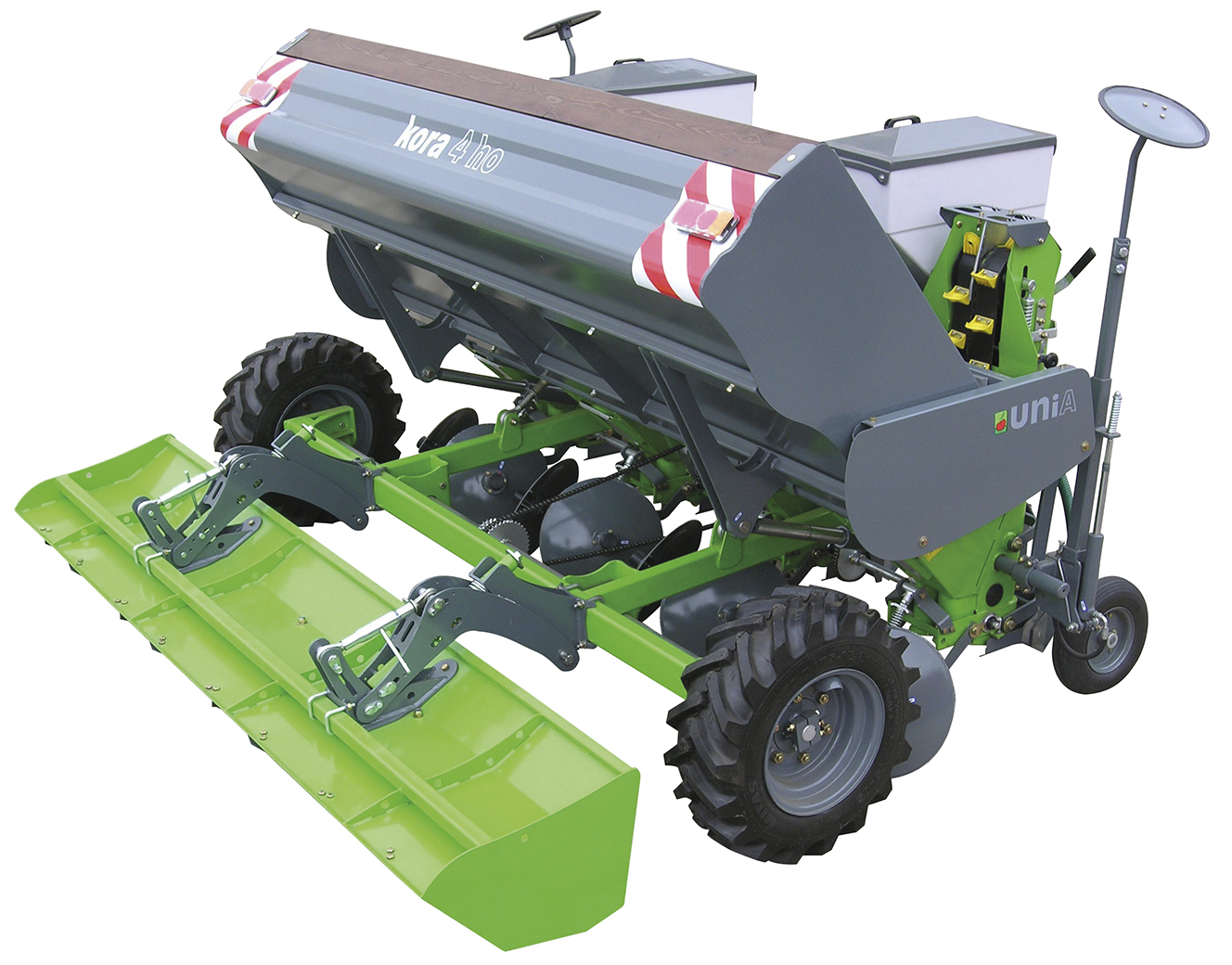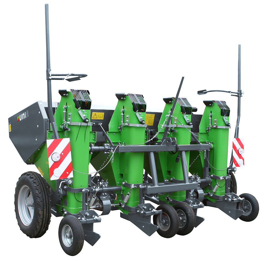 | KORA 4 Planteuse à quatre rangs portée avec une trémie fixe de 900 kg de capacité. | KORA 4H Planteuse à quatre rangs portée avec une trémie à relevage hydraulique d’une capacité de 1150 kg. | KORA 4HP Planteuse à quatre rangs trainée avec une trémie à relevage hydraulique d’une capacité de 2200 kg. |