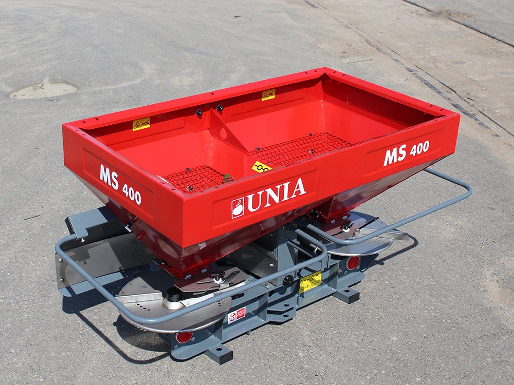Rozsiewacz MS-SAD. Wąska skrzynia ładunkowa o szer. 1,3 m idealnie nadaje się do rozsiewu nawozów w ogrodnictwie, winnicach i uprawach sadowniczych. |