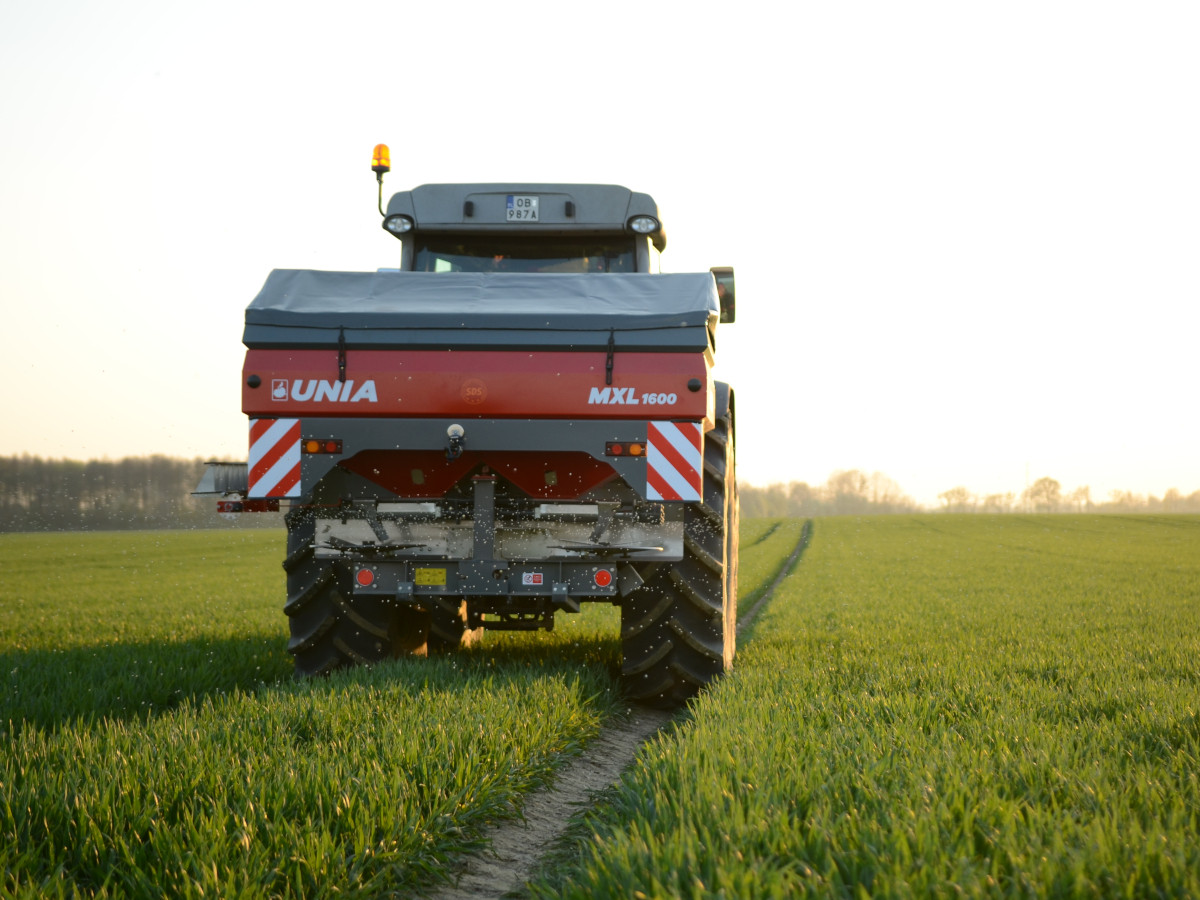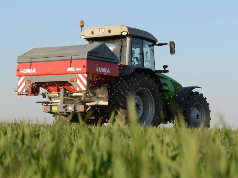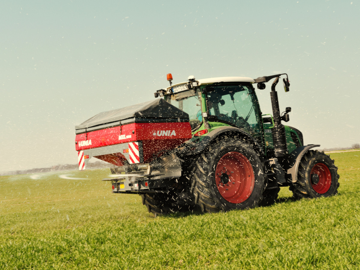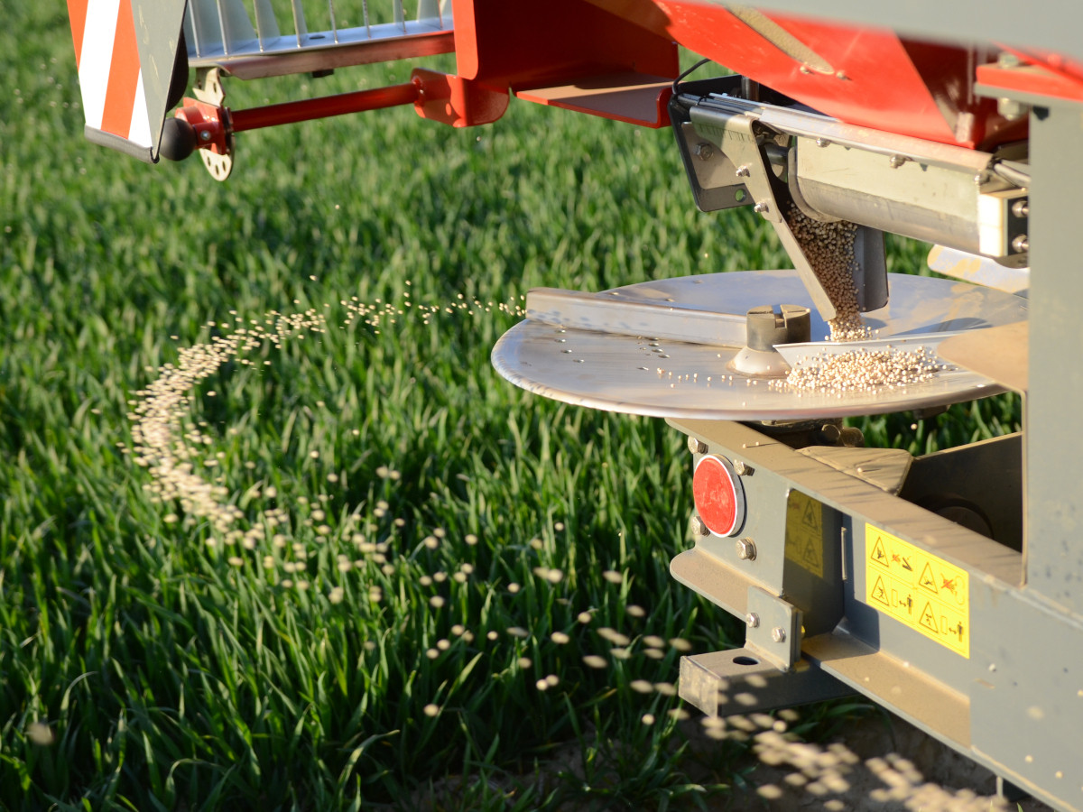 Dwutarczowe zawieszane rozsiewacze nawozów z innowacyjnym ślimakowym systemem dozowania nawozów o pojemnościach od 1200 do 3000 litrów i szerokości roboczej do 36 metrów.