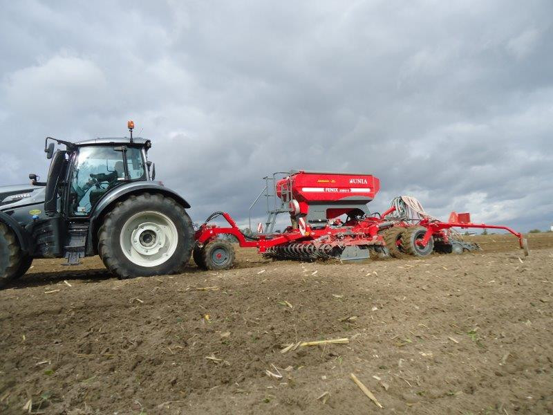 Zestaw uprawowo-siewny pneumatyczny FENIX 3000/3 ; 3000/4. Dzięki zastosowaniu masywnych redlic V-TECH z dociskiem od P=80 kG zestawy te można wykorzystywać do uprawy i siewu w technologii bezorkowej.