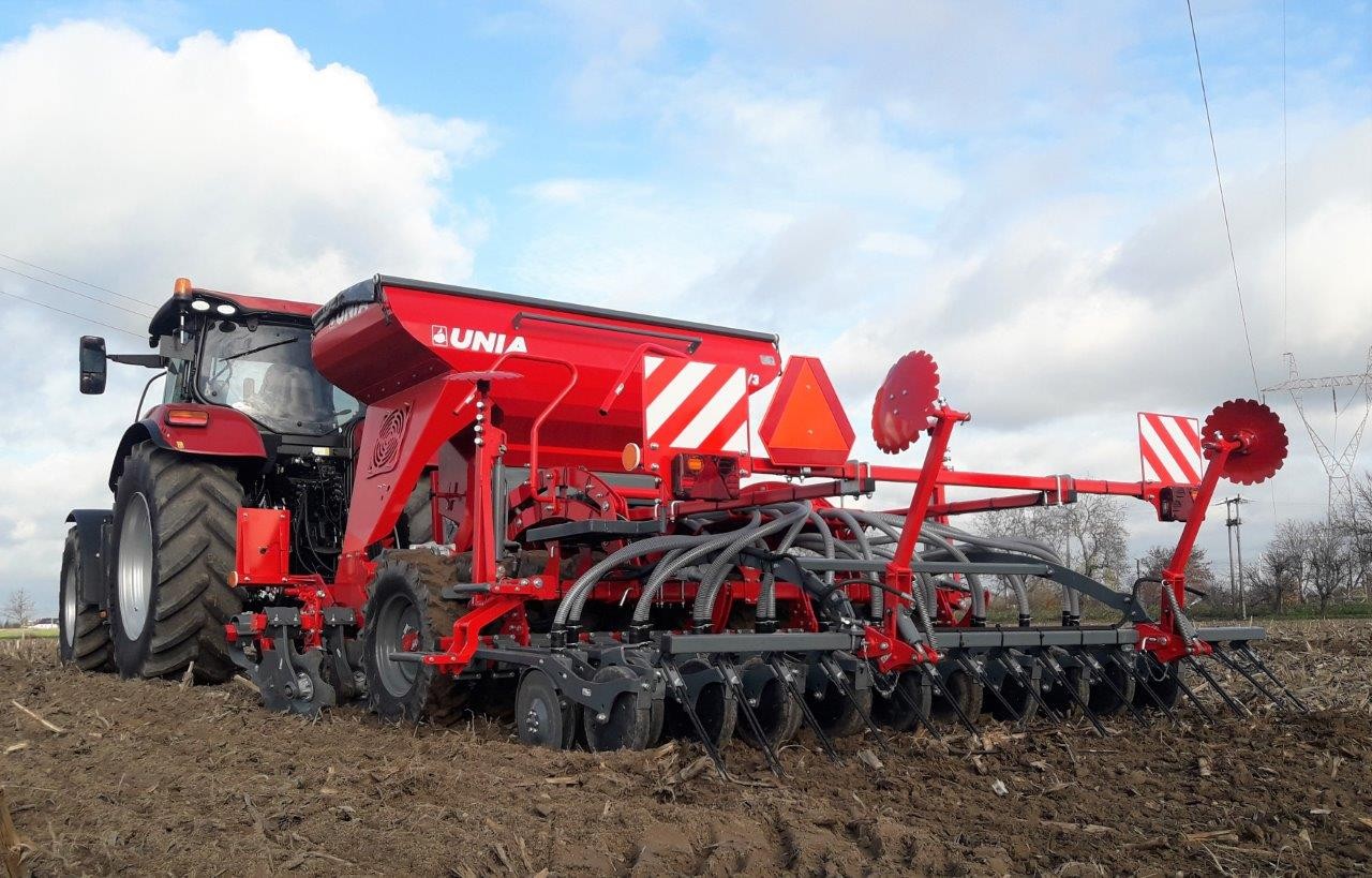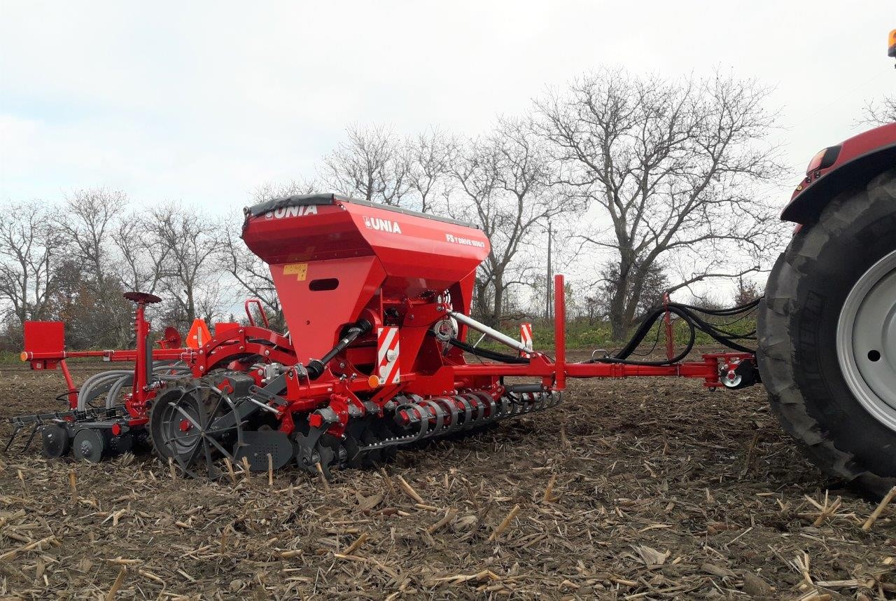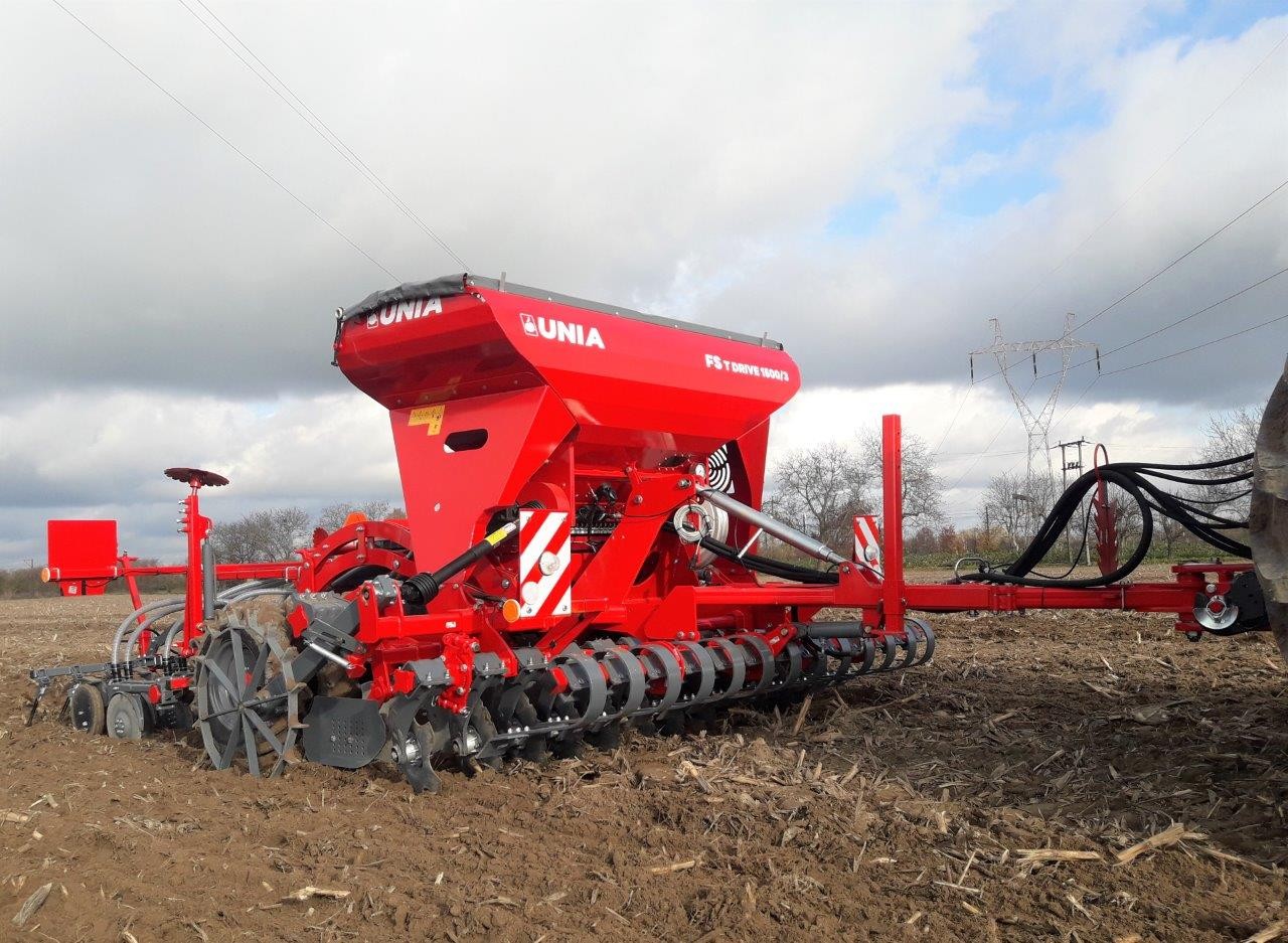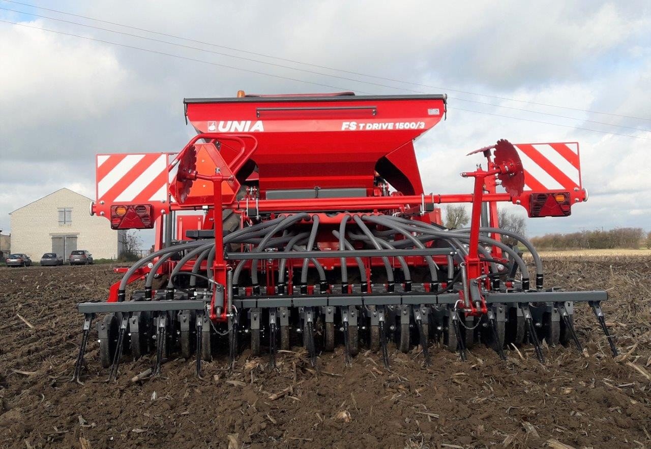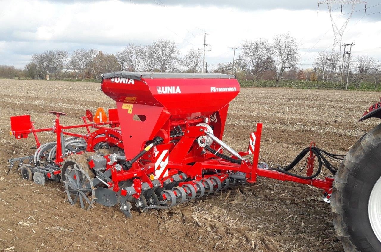 Zestaw uprawowo-siewny pneumatyczny FS T DRIVE 1500/3. Zestawy FS T DRIVE przeznaczone są do uprawy i siewu w technologii tradycyjnej i uproszczonej. Umożliwiają również pracę w technologii bezorkowej, szczególnie wersje z pakietem PREMIUM. Duże zbiorniki nasienne o pojemności 1500 dm3 to większa wydajność zestawów. Wersja DRIVE charakteryzuje się stosunkowo niewielkim zapotrzebowaniem na moc - od 100 KM. Na szczególną uwagę zasługuje ciężka redlica V-TECH G z dociskiem maksymanym P = 80 kG.