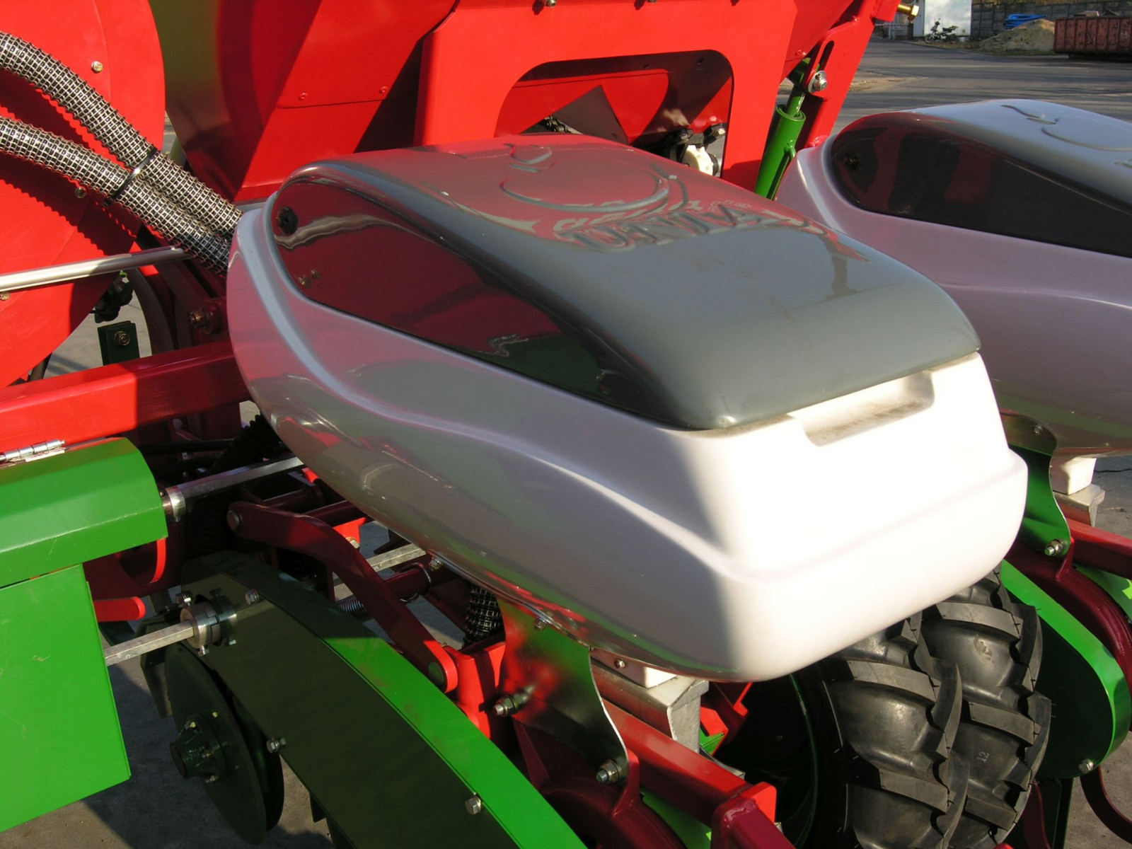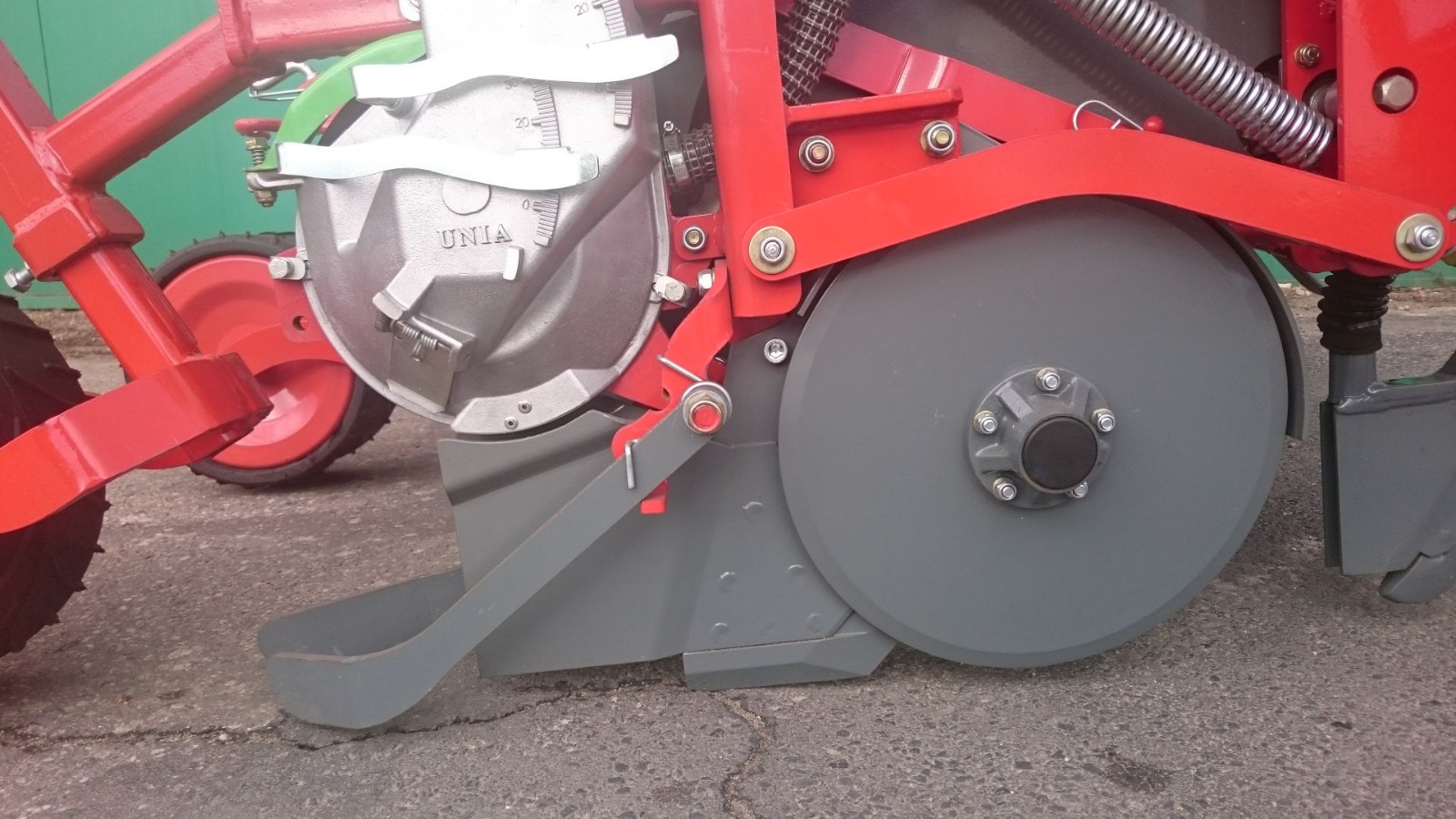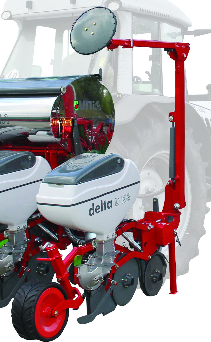 | Сошник полозный | Сошник дисковый | Высевающий аппарат. В зависимости от калибра семян сеялку DELTA можно оснастить в диски с разным количеством и диаметром отверстий. Семена пневматически всасываются к отверстиям, а скребки сталкивают излишек семян. | Однофунциональный компьютер PM100E. Контролирует процесс посева и показывает ошибки на отдельных секциях. |