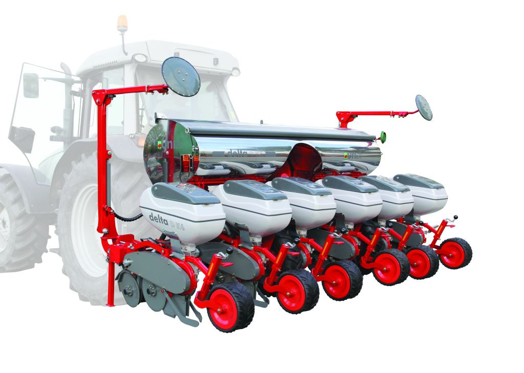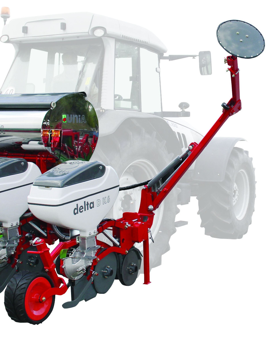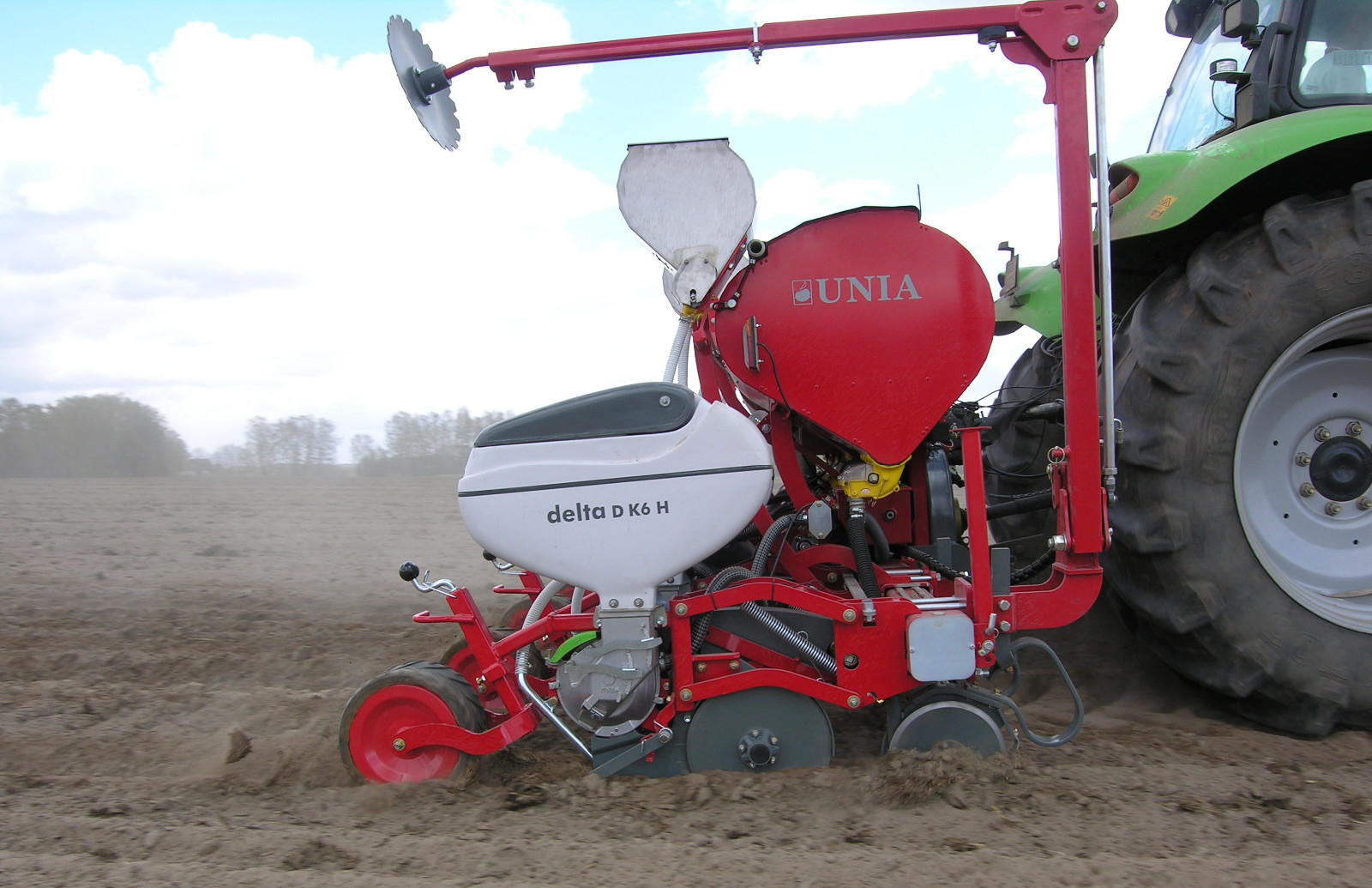 | Сошник полозный | Сошник дисковый | Высевающий аппарат. В зависимости от калибра семян сеялку DELTA можно оснастить в диски с разным количеством и диаметром отверстий. Семена пневматически всасываются к отверстиям, а скребки сталкивают излишек семян. | Однофунциональный компьютер PM100E. Контролирует процесс посева и показывает ошибки на отдельных секциях. |