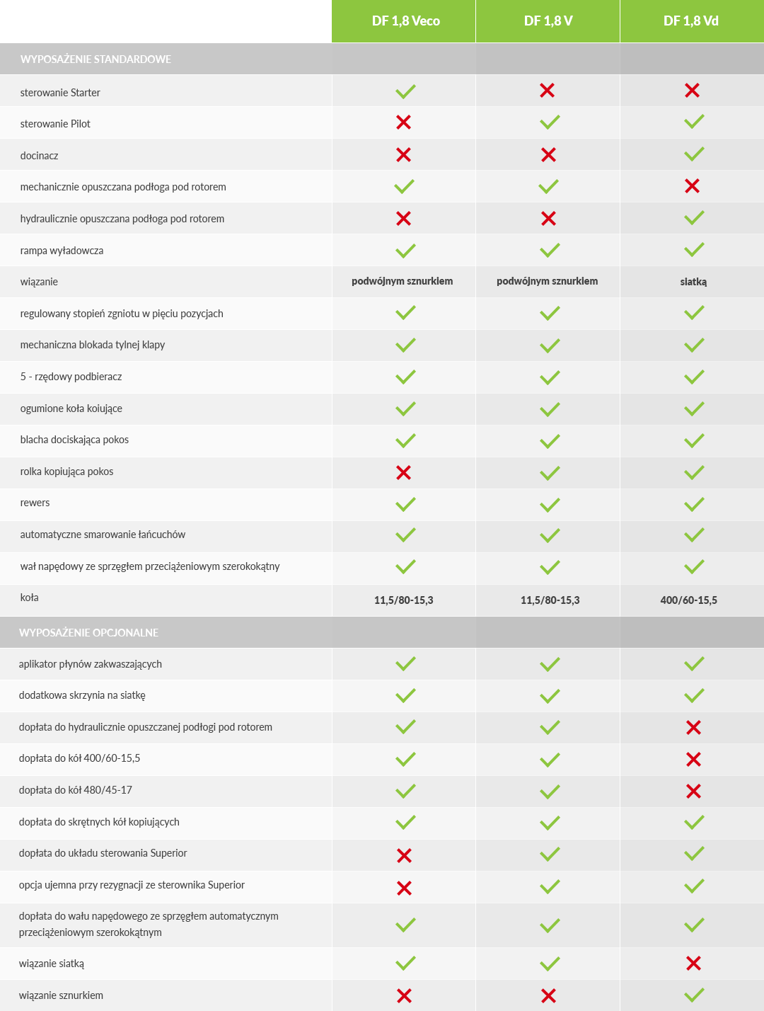 Пресс-подборщики рулонные с постоянной камерой цепочно-вальцевые DF 1,8 Veco/ 1,8 V/ 1,8 Vd
