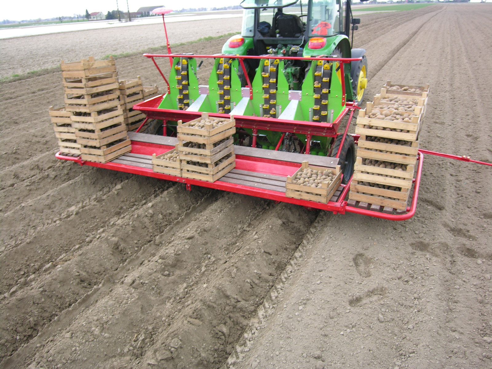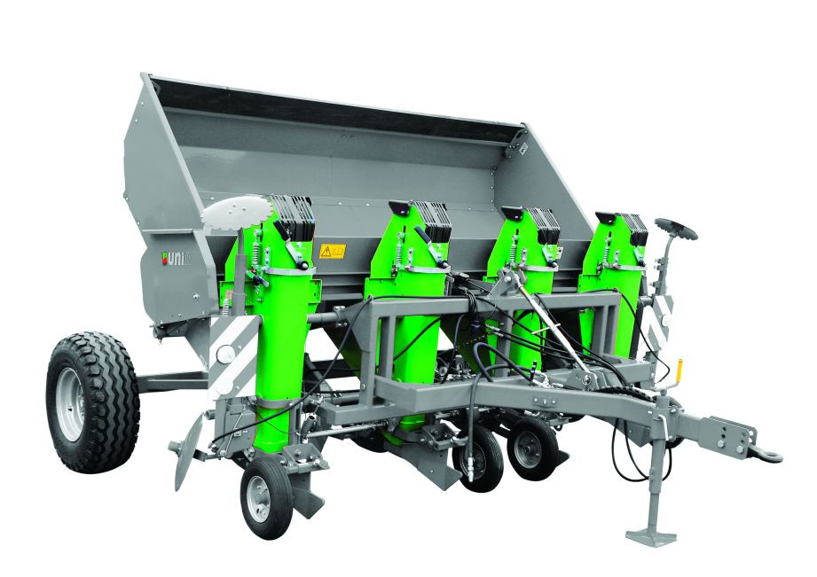 KORA 4 Mounted four row potato planter with hopper load capacity 840-900 kg (it depends from width of planting). |