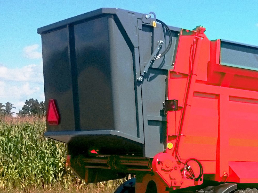 ADAPTER OBJĘTOŚCIOWY Rozrzutnik doposażony w zestaw specjalnych nadstawek oraz przystawkę objętościową z hydraulicznie otwieraną |