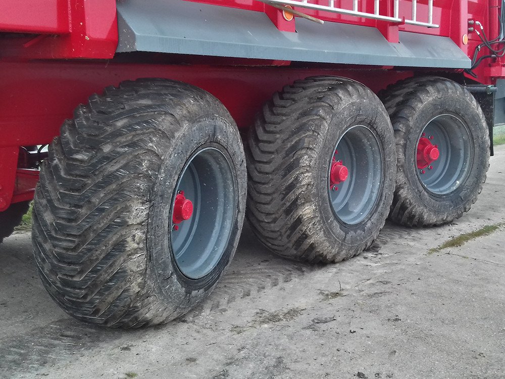 Układ jezdny Zastosowanie układu jezdnego 3-osiowego, pozwala na prace rozrzutnikiem nawet w ciężkich warunkach polowych. Rozrzutnik z powodzeniem radzi sobie również podczas skrętu lub zawracania na uwrociach, dzięki zastosowaniu w układzie jezdnym 1. i 3. Osi skrętnej (samonastawnej). |