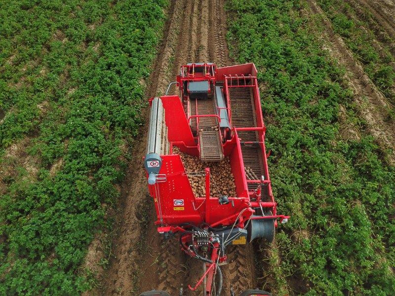 Zgarniacz obiegowy – opcja Regulowany hydraulicznie delikatnie zsuwa ziemniaki na stół przebierczy. |
