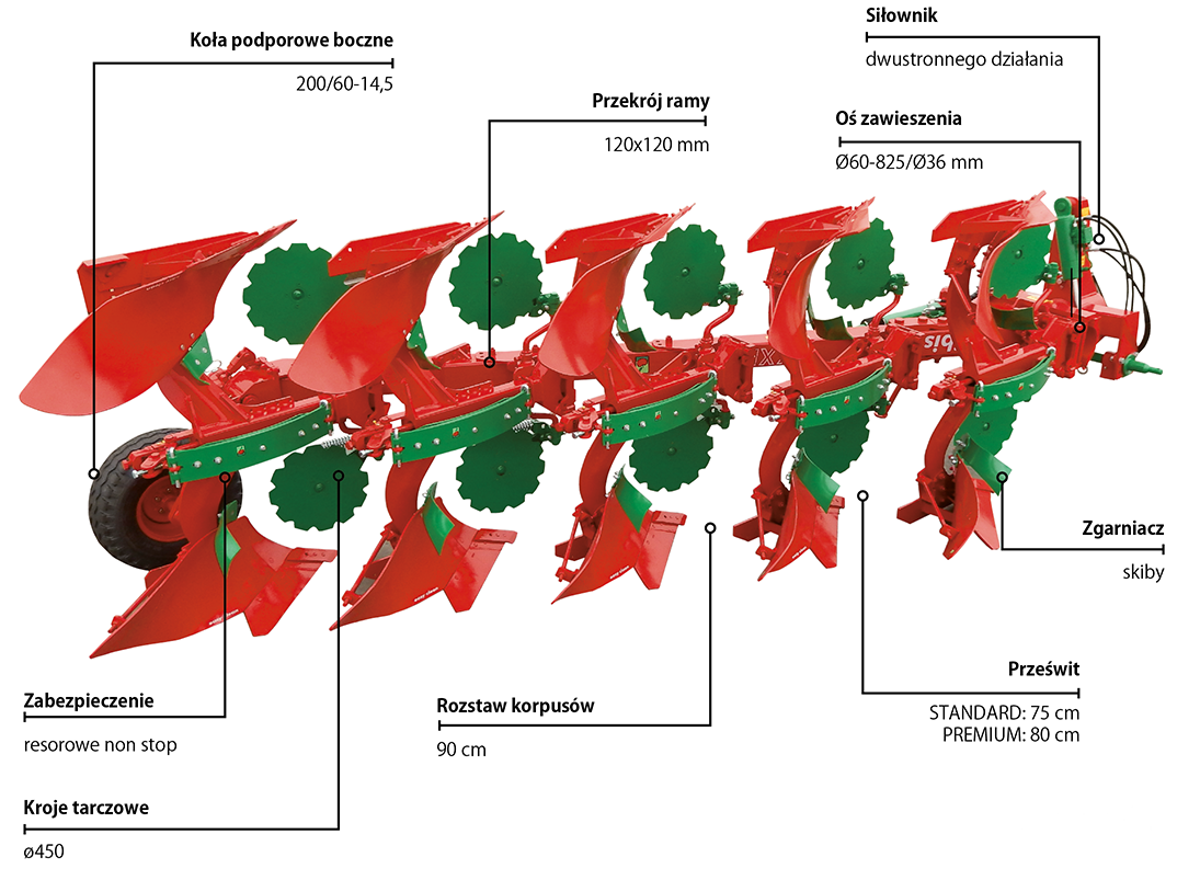 Оснащены корпусом МХ, характеризующимся малым сопротивлением во время вспашки, одновременно обеспечивающим точное покрытие пожнивных остатков.